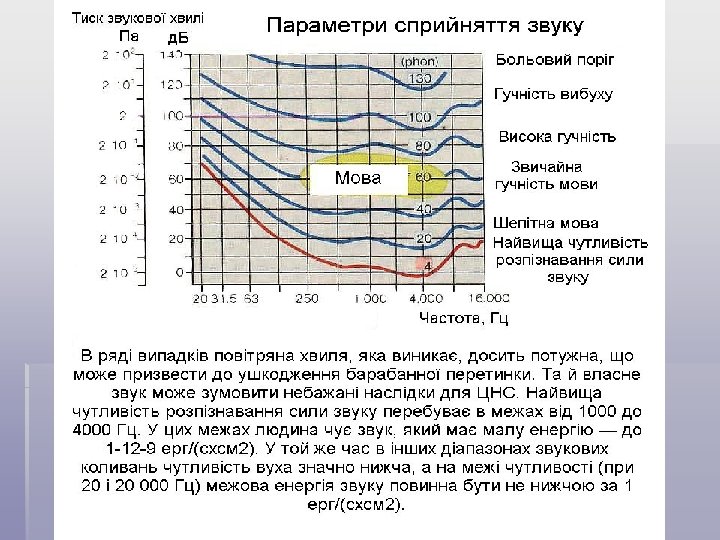Адаптация к звуку § Адаптация к звуку осуществляется как за счет защитного акустического рефлекса, так и изменения функции центральных нейронов. § Если на ухо продолжительное время действует звук, особенно громкий, постепенно орган теряет способность к адаптации. Снижение чувствительности достигается прежде всего сокращением m. tensor tympanі и m. stapedіus, которые изменяют интенсивность колебания слуховых косточек. § Ко многим отделам обработки слуховой информации, в том числе и к рецепторным клеткам, подходят эфферентные нервы, которые могут изменять их чувствительность.