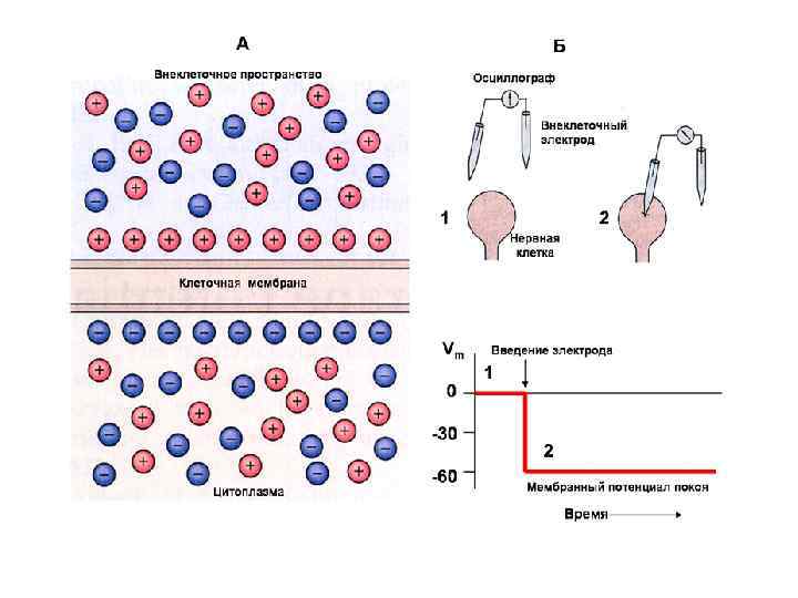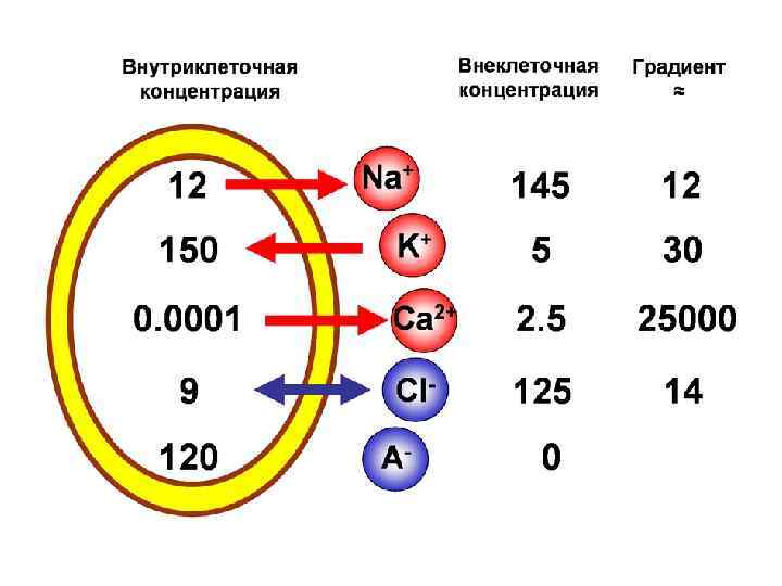 Если подставить значения концентраций из таблицы, то ЕK+ = - 97 м. В ЕNa+ = + 66 м. В