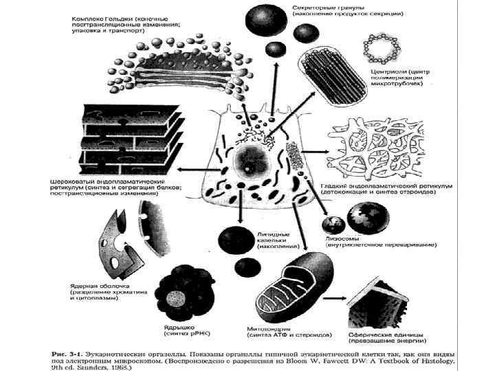 Экзоцитоз 1. В ЭПР синтезируется предшественник секрета; 2. От ЭПР везикула с веществом транспортируется к аппарату Гольджи; 3. В аппарате Гольджи из предшественника образуется конечный секрет; 4. Везикула с секретом доставляется к плазматической мембране; 5. Мембрана везикулы сливается с плазматической мембраной и вещество высвобождается во внеклеточную среду