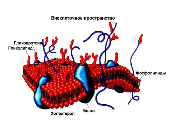 Белки • Интегральные (поры, ионные каналы, переносчики, насосы, рецепторы) • Периферические (рецепторы, белки адгезии, цитоскелет, система вторичных посредников, ферменты )