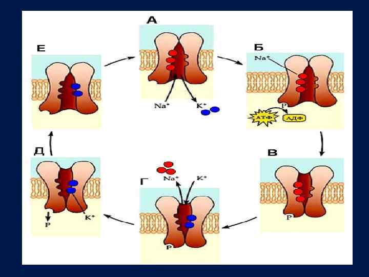 4. Роль ионных насосов в формировании ПП. В результате сопряженного транспорта Na+ и К+ поддерживается постоянная разность концентраций этих ионов внутри и вне клетки. Одна молекула АТФ обеспечивает один цикл работы Na/K-насоса — перенос трех ионов Na+ за пределы клетки и двух ионов К+ внутрь клетки.