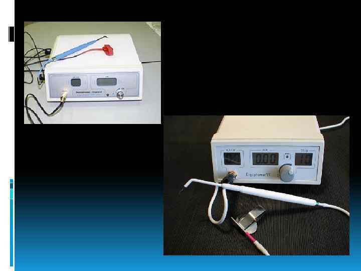 ЭОД – это определение реакции нервных рецепторов пульпы на электрический ток. Методика была разработана Рубиным Л. Р. , но в 1866 г. A. Maigtioпредложил использовать электрический ток для диагностики кариеса. При патологии зубов и периодонтальных тканей снижается порог возбудимости в пределах 7 -60 мк А, что свидетельствует о патологическом процессе в коронковой пульпе. Снижение возбудимости в пределах 60 -90 мк. А – в корневой пульпе. Реакция на 100 мк. А появляется при нормальном состоянии периодонта, на 300 мк. А и выше – при патологическом процессе в периодонте. Снижение возбудимости до 101 -200 мк. А происходит при гибели пульпы и реагировании тактильных рецепторов периодонта. При пародонтозе, неврите иногда отмечается повышение возбудимости до 1, 5 – 0, 5 мк. А, что используется при диф. диагностике.