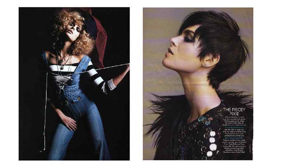 ВОЛОСЫ: Волосы должны быть асимметрично скульптурные или по-мальчишески взъерошенные. Контур геометрический, но края требуют некоторой филировки или стрижки каскадом, чтобы добавить свежести и избежать тяжести. Поскольку ваш общий вид такой эклектический и оригинальный, вы можете себе позволить очень дикий стиль, если того пожелаете. Модные стили замечательны на вас, но они быстро устаревают. Кроме того, для поддержания формы таких стрижек, вам постоянно необходимо посещать вашего парикмахера, поскольку этот фактор является наиболее важным для вас. Короткая стрижка лучше всего работает, потому что вам нужно показывать лицо, особенно глаза. "Мальчишеский Шик" это ваш билет в изысканность. Длинные волосы очень трудно поддерживать. Они требуют очень яркого стиля, а-ля парик Тины Тернер. Если ваш образ жизни позволяет такой экстремальный вид, наряду со стоячим начесом и лаком, который для этого требуется, это может быть весьма ошеломляющим. Если нет, то это будет катастрофа!(прим. совет немного устарел, катастрофы не будет, но четкий стиль нужен. )