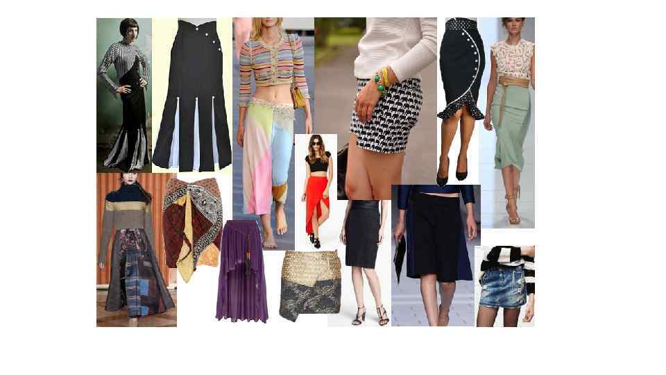 ЮБКИ: Ваша основная прямая юбка должна быть короткой и узкой, либо строго скроенной или скульптурной и четко сужающейся к низу. Подол должен заканчиваться не ниже середины колена (выше для веселых, фанк стилей). Длинные, прямые юбки можно носить, если они немного сужаются в колене, а потом идет легкий клеш, но не как раструб на трубе (муз. инструмент), это слишком. Зато сзади возможен разрез. Юбки в складку хороши, если они длинные (хотя бы до середины голени), имеют неравномерный подол, и складки начинаются в области бедер. Юбки с косым срезом тоже можно носить, пока они очень узкие и облегают тело. Они так же имеют неровный подол, и носятся длиной до середины икры. Асимметричный подол всегда превосходен, даже на вечерних платьях, но длина должна быть достаточно мала (показывать щиколотки). Заниженная талия - потрясающая деталь, пока она асимметрична. Она никогда не должна быть плавной или замысловатой! Избегайте: традиционной симметричной формы (A-силуэта). Широких, бесформенных стилей. Расклешенных, плавных стилей. Глубоких складок и мягких складок. Острых складок, которые не застрочены на бедрах. Пышных юбок.