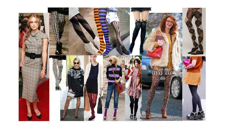 ЧУЛКИ, КОЛГОТЫ: Вы можете носить любой тип чулочных изделий, пока они разбивают вашу вертикальную линию, а не составляют единую линию с обувью и подолом. Это может быть достигнуто использованием цвета, контрастного к подолу и обуви, или путем добавления текстуры (геометрия, рисунок «елочка» , асимметрия и т. д. ) Так же вы можете носить чулки с диким принтом для веселья! Ультра прозрачные чулки лучше оставить для вечера, когда они должны быть очень блестящими и шелковистыми. Дневные для вас это матовые колготы, на вас они освежающе утонченные, и в то же время вписываются в ваш творческий образ! Чулки телесного тона эффектны с очень открытыми нарядами, особенно в летнее время. Избегайте: Совпадения цвета колгот с цветом подола одежды или обувью. (прим. к колготам относятся также общие рекмендации по принтам, очень мелкая редкая точка и размытая акварель не годятся, из опыта. )
