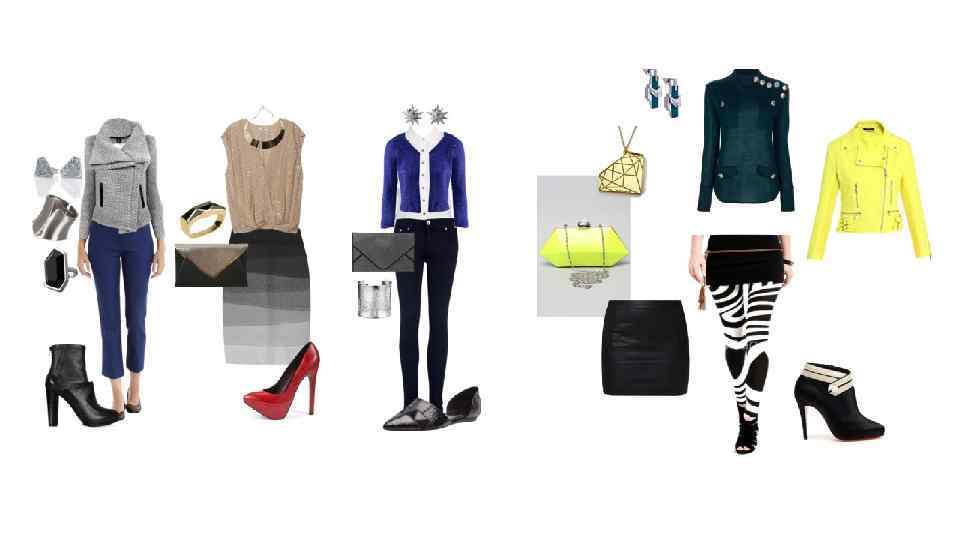 ФОРМЫ: Ассиметричные и неправильные формы. Короткие и широкие геометрические формы с резкими или скругленными краями. Коренастые, квадратные формы. Скульптурные формы. Примечание: смешивание противоположных типов фигур хорошо работает на вас. Это делает ваш образ электрическим. Всегда работайте с узкой базой и добавляйте противоположные формы для контраста. Избегайте: Деликатных, витиеватых форм. Симметричных, равномерных форм. Изысканных форм (если только они не очень хаотичны и остроумны). ЛИНИИ И СИЛУЭТ: Разбитый, прерывистый силуэт. Ломанные квадратные очертания. Резко очерченные края. Строгие прямые или мягкие прямые линии. Драпировки или плавные линии могут быть использованы, когда они очень вытянуты вдоль тела и носятся с другими элементами одежды (либо верх, либо низ), которые противоположны по форме (острые) - это нарушает вертикаль. Примечание: Использование противоположных линий больше всего вам походит. Сделайте вашим фоном обтягивающий, узкий, и прилегающий силуэт. Сверх этого добавьте неправильные или асимметричные линии в прерывистой, ломаной манере. Избегайте: Любых непрерывных силуэтов. Бесформенных силуэтов. Сложных, деликатных, и декоративных линий. Чрезмерных драпировок, плавных линий. Симметричных очертаний.