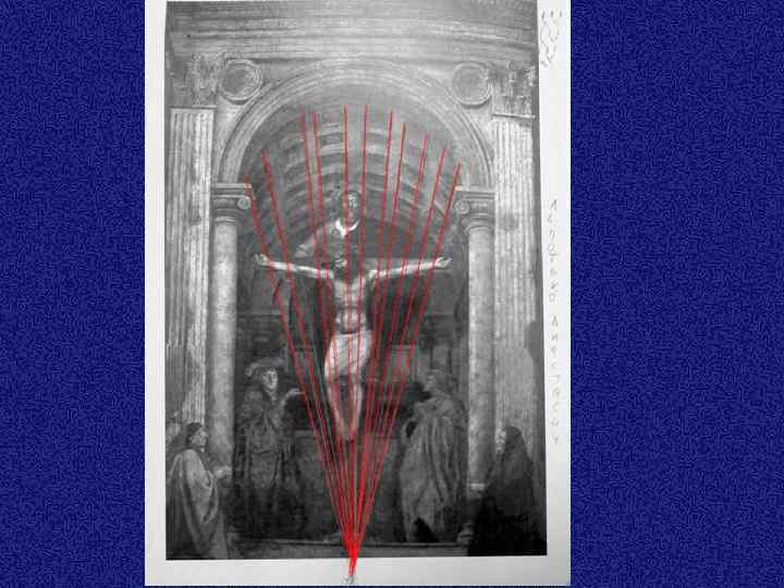 • одна из первых в истории мировой живописи работ, где применены законы линейной перспективы, иллюзию трёхмерного пространства. • большое влияние Брунеллески • первая работа, выполненная с помощью картонов – больших рисунков, которые прикладывали к стене и обводили контур.