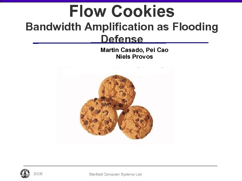 Flow Cookies Bandwidth Amplification as Flooding Defense Martin Casado, Pei Cao Niels Provos 2005 Stanford Computer Systems Lab