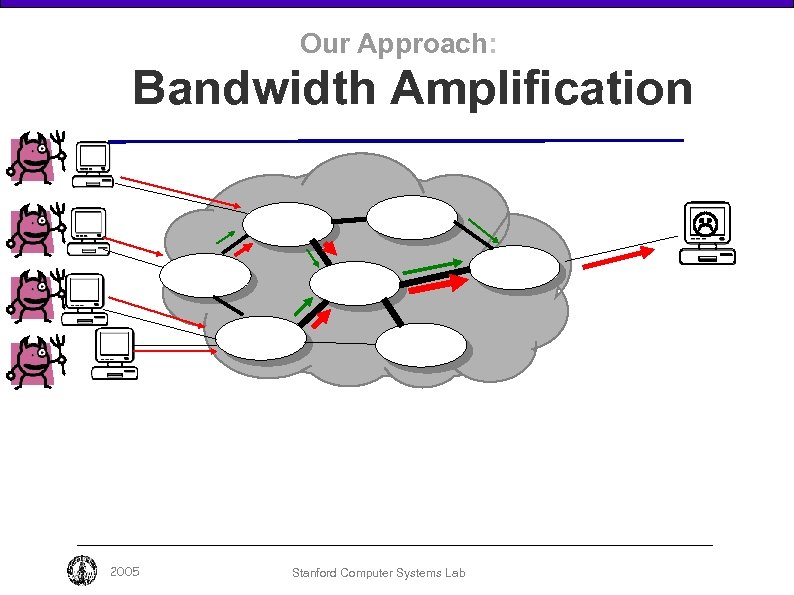 Our Approach: Bandwidth Amplification v v Does not guarantee any particular user’s access to the web site Web site remains accessible to users who can reach the tier-1 ISP 2005 Stanford Computer Systems Lab