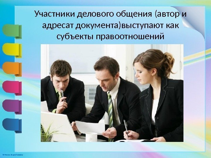 © Фокина Лидия Петровна Участники делового общения (автор и адресат документа)выступают как субъекты правоотношений