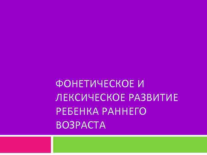 ФОНЕТИЧЕСКОЕ И ЛЕКСИЧЕСКОЕ РАЗВИТИЕ РЕБЕНКА РАННЕГО ВОЗРАСТА
