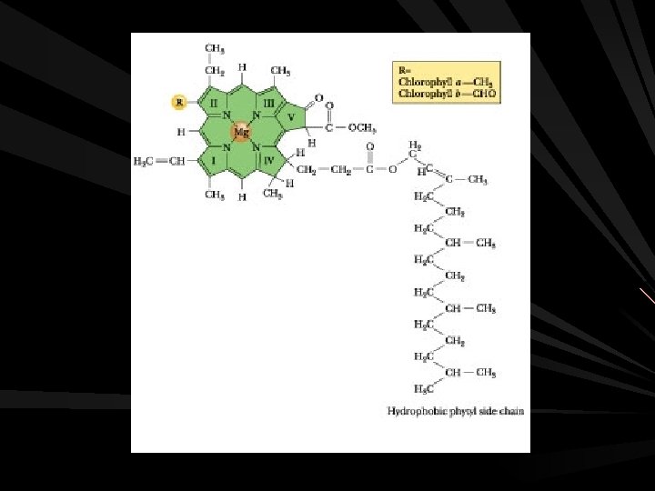 A. Chlorophylls Green pigments involved in the photosynthesis of higher plants, incl. algae. Location in plants • In foods, concern focused on chlorophylls a & b occur in approximate ratio of 3 : 1 • In leaves, chlorophylls are located in plastid bodies, so called chloroplasts (5 -10 long μm; 1 -2 thick μm) within it are smaller particles, called grana ( Ф 0. 2 -2 μm) they are composed of lamellae (Ф 0. 01 -0. 02 μm) chlorophylls molecule are surrounded by lamellae.