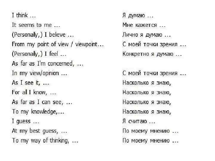 Useful language: Giving your opinion (1) I agree. Я согласен. I'm not sure. Я не уверен. For example. . . Например…Мысалы… I don't agree. Я не согласен. (I think) it depends. Я думаю, бывает поразному • In my opinion. . . По моему мнению… • • •
