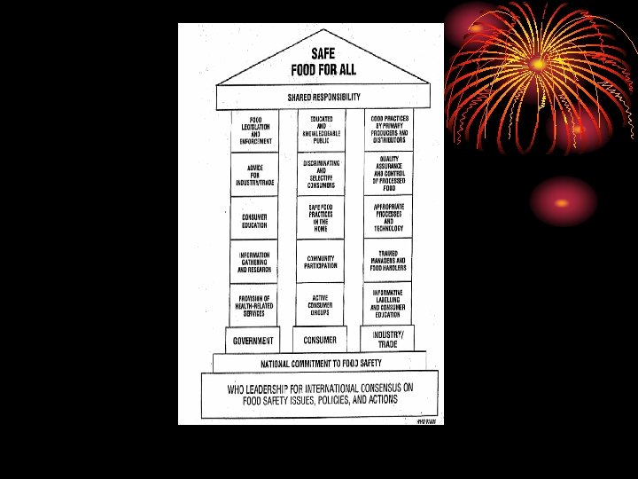 Food control • Many food control systems need to be revised and strengthened • Food control must be based on modern concept of risk assessment • Responsibility is shared between different agencies or ministries in most countries