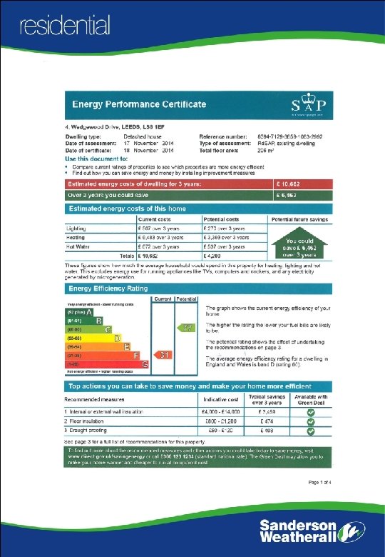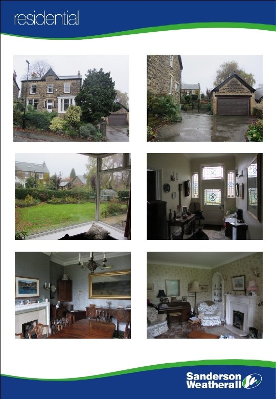 FIRST FLOOR Landing with useful fixed shelf. Double Bedroom 1 19 x 14 with fixture wardrobes, shower and pedestal washbasin. Single Bedroom 5 9 6 x 7 6 with pedestal washbasin. Double Bedroom 2 16 x 13 9 with washbasin and mirror over Double Bedroom 3 13 9 x 13 6 with pedestal washbasin and mirror over. Half tiled Bathroom with paneled bath and shower over, bidet and pedestal washbasin. Separate WC. Bedroom 4/Study 14 x 10 6 with Linen Cupboard housing hot water cylinder with electric immersion heater. OUTSIDE Double Garage 17 6 x 14 + 15 x 10 of similar construction to the principal residence with a rear extension accommodating up to 3 cars or for many other useful purposes. There is also ample off street car parking. The house stands in a generous garden and has the opportunity for further extension subject to all appropriate planning consents. SERVICES All mains services are installed. LOCAL AUTHOIRTY Leeds City Council Tax Band G VENDOR’S SOLICITOR Sarah Taylor Fawcett 7 Princes Square Harrogate HG 1 1 ND Tel: 01423 538111 VIEWING ARRANGEMENTS The property may be viewed by prior appointment with the vendor's sole selling agents Sanderson Weatherall LLP. Please contact Mr David Chary who will be pleased to make a mutually convenient appointment to view. Tel: (0113) 221 6019. E-mail: david. chary@sw. co. uk