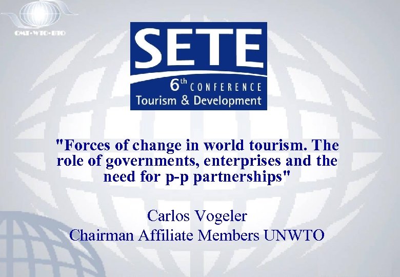 "Forces of change in world tourism. The role of governments, enterprises and the need for p-p partnerships" Carlos Vogeler Chairman Affiliate Members UNWTO