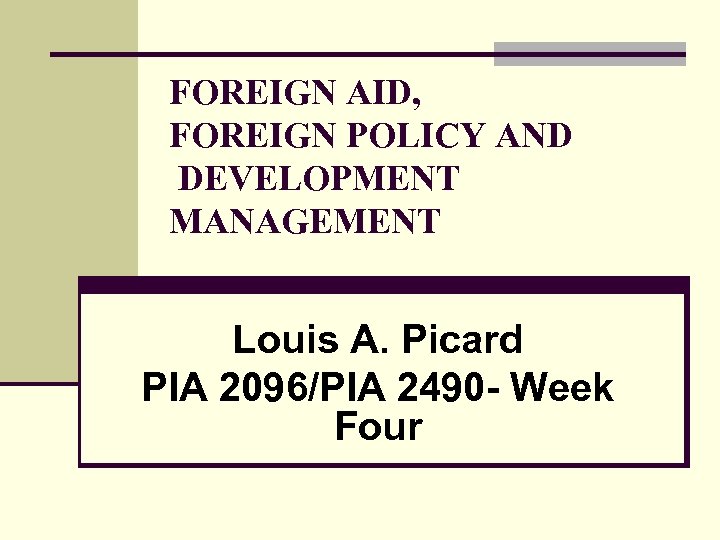 FOREIGN AID, FOREIGN POLICY AND DEVELOPMENT MANAGEMENT Louis A. Picard PIA 2096/PIA 2490 - Week Four