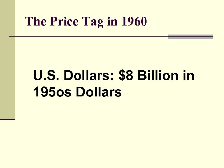 The Price Tag in 1960 U. S. Dollars: $8 Billion in 195 os Dollars