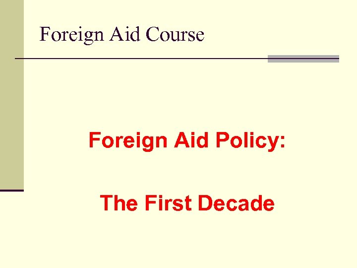 Foreign Aid Course Foreign Aid Policy: The First Decade