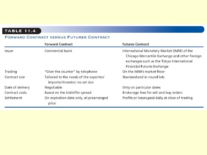 Forward Market o currency worth more in forward market than spot market => premium o currency worth less in forward market than spot market => discount