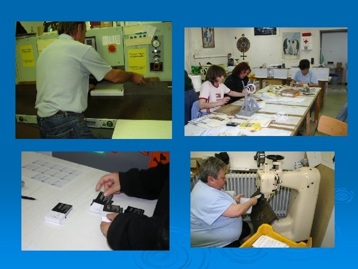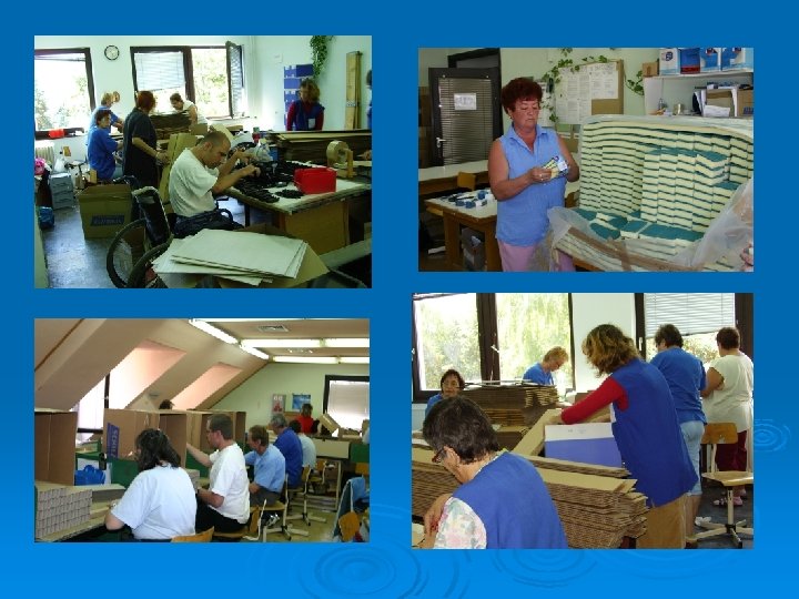 3. Csomagolás, szerelés: Szereldéinkben jelenleg 70 fő megváltozott munkaképességű dolgozik, napi 4, 5 illetve 6 órában v Vevőink olyan autóbiztonsági öveket gyártó cégek, mint az Autoliv Kft. , AWF Kft. , melyek a Ford, Volkswagen vagy épp a GM autógyárak beszállítói. v Kisebb szerelési munkákat végeznek ezekben a részlegekben (Multy Hungária Kft. , Autoliv Kft. ): v • • • Autóbiztonsági alkatrészek rész- és előszerelése (biztonsági övek, zár- és rögzítő elemei) Multy Hungária Kft. : háztartási célokra használatos szivacsok, törlőkendők csomagolása Szakképzettséget nem igénylő csomagolási, ragasztási feladatok