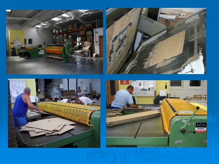 2. Papírcsomagoló eszköz gyártása: Ø Ø Ø Ø 1997. évtől kezdődött a karton csomagoló doboz gyártás, színes reklámgrafikai kivitelben, kb. évi 200. 000 db gyártása. 2001. évtől 3 és 5 rétegű hullámkarton lemezekből gyárt gyűjtő és csomagoló dobozokat. 2002. évben az eddigi főleg technikai és technológiai fejlesztés után az infrastrukturális háttér fejlesztését valósítottuk meg. (raktár) 2007 -ben új, könnyűszerkezetes ipari csarnok épült a hullámkarton feldolgozás biztosításához. A régió hullámkarton doboz igényeinek egy részét hazai és olasz gyártmányú gépi berendezésekkel elégítjük ki. Körollózó és réselő gépek, tégely- és hengerstancoló gépek biztosítják a ragasztott és tűzött kivitelű, kis- és nagy méretű, 3 illetve 5 rétegű hullámkarton dobozok előállítását. A Flexoprint FLX 1300 -as nyomógép az egyszínű és színes hullámkarton dobozok előállítását biztosítja.