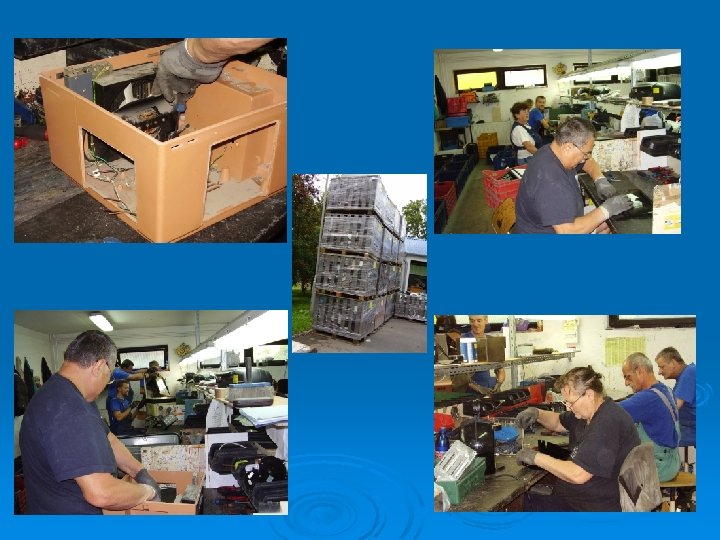 4. Elektrotechnikai hulladékfeldolgozás: v v v Legújabb tevékenységünk 2006. év végén kezdtük el az elektromos és elektronikai hulladékok előkezelését. Célunk, hogy növeljük a hulladékból kinyerhető és újrahasznosítható alapanyagok mennyiségét. Átveszünk informatikai, szórakoztató, elektronikai berendezéseket, valamint háztartási gépeket. Termelők, forgalmazók és a lakosság egyaránt leadhatja ilyen hulladékát, továbbá kérésre nagyobb mennyiség esetén ingyenesen elszállítjuk azt. Az átvett berendezéseket szakszerűen kezeljük, részegységekre bontjuk és a veszélyes anyagokat tartalmazó részeket eltávolítjuk. A keletkező veszélyes és nem veszélyes anyagokat előírásoknak megfelelően tároljuk, majd erre feljogosított és engedéllyel rendelkező szervezetnek továbbítjuk. 2008 -ban megkaptunk az elektronikai hulladék begyűjtési engedélyt is az EDU-KTVF-től 2010 -től fémkereskedelmi engedéllyel is rendelkezünk. 2010 -ben hulladékkezelői partnerei lettünk az ELECTRO-COORD Magyarország Nonprofit Kft. -nek 2011 -ben elektronikai hulladékgyűjtő akciót szerveztünk óvodák és általános iskolák részére, melyet folytatni szeretnénk a jövőben is