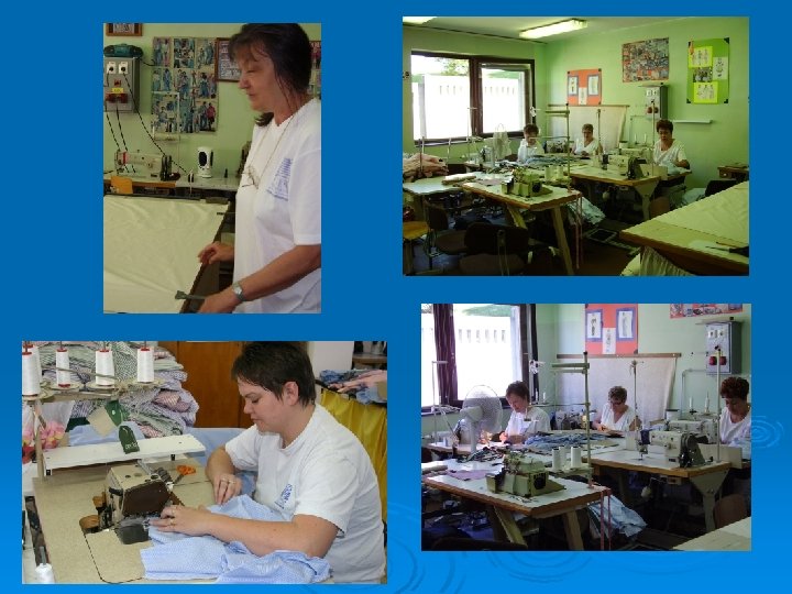 5. Konfekcionált textilárugyártás: v v v v Varrodánk az előkészítéstől a szabáson át, a késztermék csomagolásáig minden munkafázist képes elvégezni. Modern gépekkel felszerelt varrodánk kis- és nagysorozatok gyártására egyaránt alkalmas. Termékeink között megtalálhatók ágyneműgarnitúrák, egészségügyi textíliák, munkaruhák, fürdőköpenyek, divatáruk. Kis sorozatban, egyedi szabásminták alapján gyermek- és felnőtt divatkollekciók készítésével butikok igényeit is kielégítjük. Szabvány és szabványon kívüli kültéri, beltéri és asztali zászlók készítése. Jelenleg 6 fő dolgozik varrodánkban, melyből 1 fő megváltozott munkaképességű. Kapacitása: 2200 óra/hó