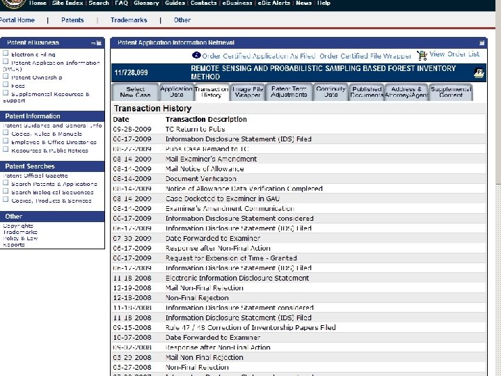 Details of an application. USPTO. gov • Enter the e. Business tab / Public PAIR • Enter application number or publication number or patent number. • Bibliographic data includes current status. • Transaction history shows what has happened. • Documents easy to download. (except NPL)