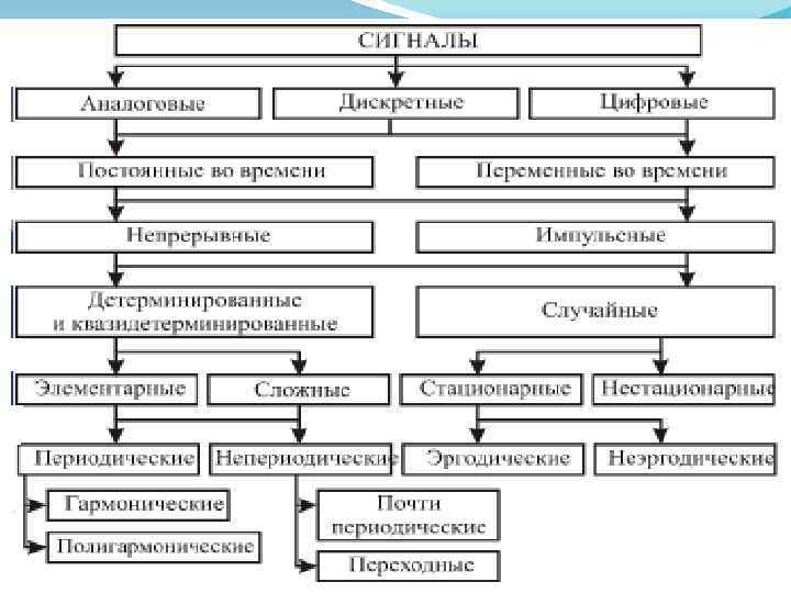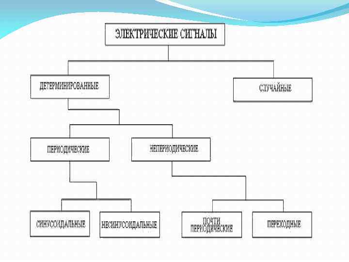 Сигналы различной формы 1. Сигнал не изменяющийся во времени - это постоянное напряжение или ток. 2. Сигнал гармонической формы изменяется по закону sin или cos 3. Сигнал треугольной формы.
