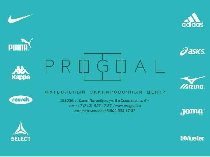КОНТАКТНАЯ ИНФОРМАЦИЯ PROGOAL Санкт-Петербург, Лермонтовский пр. д. 7 8 -921 -956 -01 -67 с 10. 00 до 21. 00 Отдел оптовых продаж с 10. 00 до 19. 00 по рабочим дням arhipov@progoal. ru