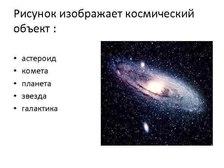 Рисунок изображает космический объект : • • • астероид комета планета звезда галактика