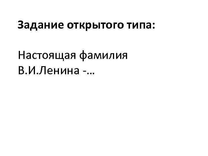 Задание открытого типа: Настоящая фамилия В. И. Ленина -…