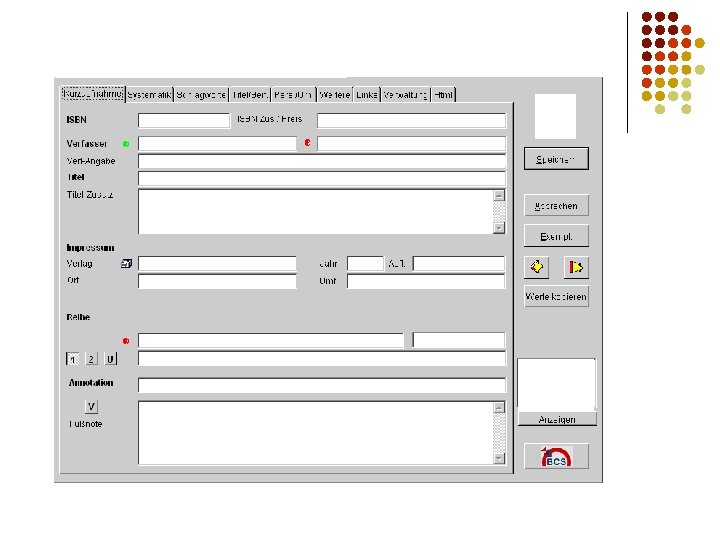 Arbeitshilfen und Links (OBVSG): l l l l Diese Links sind nur Mitarbeitern von Einrichtungen des Österr. Bibliothekenverbundes mit Anmeldung zugänglich! http: //www. obvsg. at/katalogisierung/formate/ http: //www. obvsg. at/katalogisierung/formalerschliessung/regelwerke -online/ RAK-Musik 2003 http: //www. obvsg. at/fileadmin/files/kat/fe/rak_musik_2003. pdf Tonträger (RAK NBM): http: //www. obvsg. at/fileadmin/files/kat/fe/nbm 2010/2_tontraeger_2009. pdf Bildtonträger (RAK NBM) http: //www. obvsg. at/fileadmin/files/kat/fe/nbm 2010/3_bildtontraeger_2010. pdf DVD (RAK NBM) http: //www. obvsg. at/fileadmin/files/kat/fe/nbm-2010/7_7_e-ress -dvd-video_2009. pdf