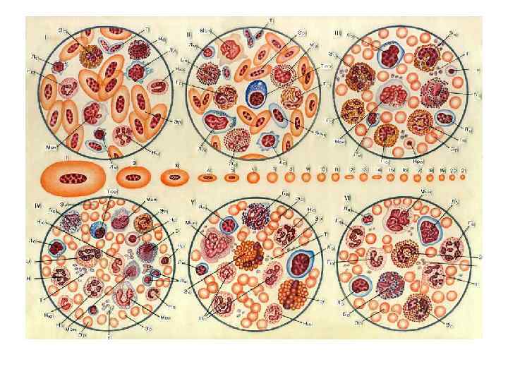 В зависимости от диаметра выделяют следующие эритроциты: • • 6 -9 мкм – нормоциты менее 6 мкм - микроцитами более 9 мкм – макроцитами более 12 мкм – мегалоциты.