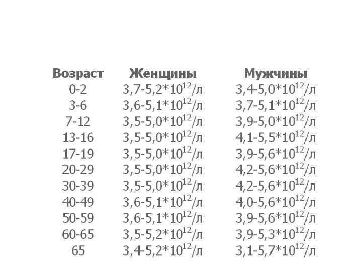 Количество эритроцитов • В норме число эритроцитов у мужчин равно 4 — 5 1012/л, • или 4 000 - 5 000 в 1 мкл крови. • У женщин количество эритроцитов меньше и, как правило, не превышает 4, 5 1012/л. • При беременности число их может достигать 3, 5 1012/л и даже 3, 2 1012/л.
