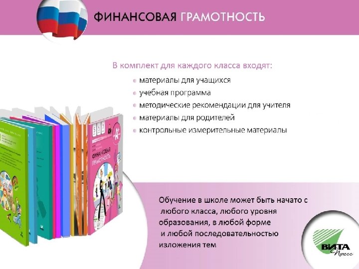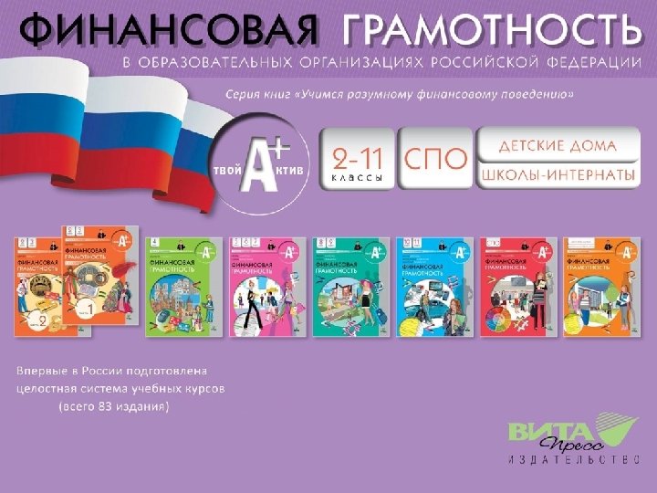 Совместный Проект Министерства финансов РФ и Всемирного Банка «Содействие повышению уровня финансовой грамотности населения и развитию финансового образования в Российской Федерации» Издательство Вита-Пресс – победитель конкурса по разработке образовательных программ по финансовой грамотности для учащихся 2– 11 классов общеобразовательных организаций и среднего профессионального образования