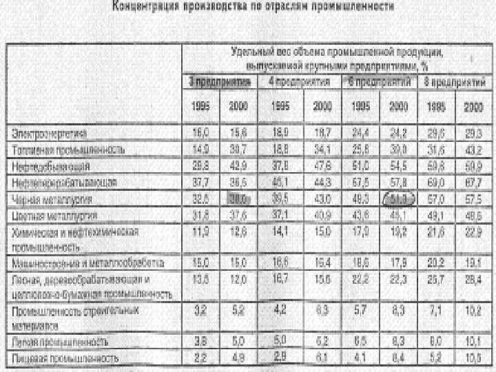 Для промышленности Российской Федерации zхарактерна высокая степень концентрации производства, поскольку в прошлом осуществлялась ориентация на создание крупных предприятий