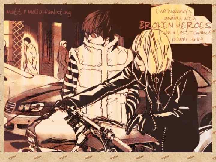 Мелло и Мэтт воспитанники детдома «Вамми» - детдом для одаренных детей , так же в этом доме воспитывался легендарный детектив L , для которого в этом доме готовят наследников. Ниар – воспитанник детдома «Вамми» , является первым претендентом на наследование места L. Вторым – Мелло.