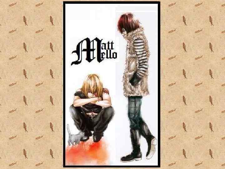 Мэтт лучший друг Мелло. Спокойный , достаточно сложно вывести из себя. Открытый общению , если инициатива идёт от Вас. Несмотря на свой пофигизм не прочь и повеселиться, если это достойно его внимания. Никогда не отказывает в затеях Мелло и всегда готов его поддержать.