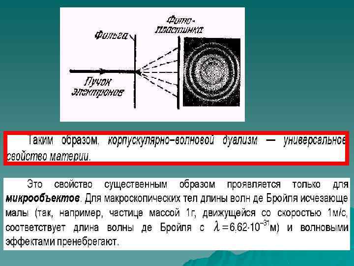ФОК : «Можно сказать, что для атомного объекта существует потенциальная возможность проявлять себя, в зависимости от внешних условий, либо как волна, либо как частица, либо промежуточным образом. Именно в этой потенциальной возможности различных проявлений свойств, присущих микрообъекту и состоит дуализм волна- частица. »