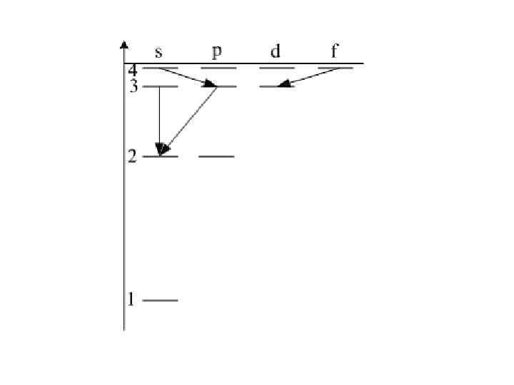 Правила отбора: Для электрона существуют переходы, для которых : - - n n такие изменение Δl орбитального квантового числа l удовлетворяет условию Δl = ± 1 изменение Δm магнитного квантового числа удовлетворяет условию Δm = 0, ± 1 серия Лаймана - np→ 1 s (n=2, 3…) серия Бальмера - np→ 2 s, ns→ 2 p, nd→ 2 p (n=3, 4. )