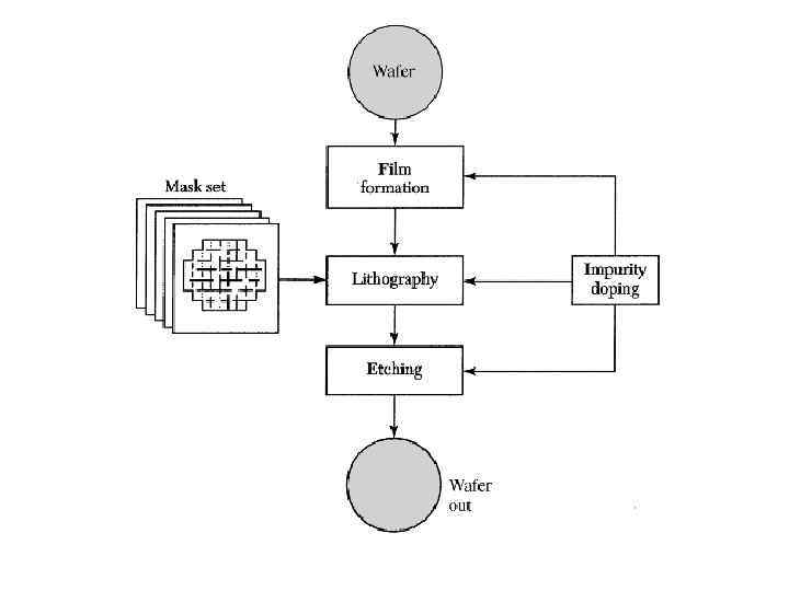 Технологический процесс (маршрут) изготовления кристаллов ИС характеризуется строго заданной последовательностью проведения операций (не допускается перестановка последовательности операций или пропуск одной из них) и заданными интервалами времени хранения (пролеживания) пластин со структурами кристаллов между операциями. Маршрут состоит из нескольких сотен отдельных операций, каждая из которых проводится при строгом соблюдении норм на параметры условий производства, технологических сред и обрабатываемых структур.