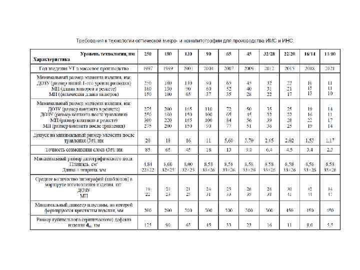 Если минимальный размер элементов Lmin (топологическая норма) ИМС и ИМП лежит в микронной области 1, 0 мкм ≤ Lmin < 10 мкм, то литография обычно называется микролитографией, если в субмикронной области 0, 1 мкм ≤ Lmin < 1, 0 мкм, то – субмикронной литографией, а если в субстананометровой области Lmin < 100 нм, то – нанолитографией.