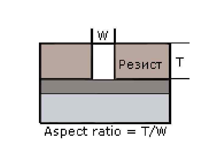 Основные свойства фоторезистов Светочувствительность S = 1/H - величина, обратная экспозиции (Выражается в лк×с (люксах на секунды) H, требуемой для перевода фоторезиста в растворимое или нерастворимое состояние (в зависимости от того, позитивный резист или негативный). Светочувствительностью определяются производительность процесса фотолитографии и выбор оборудования. Например, необходимость использования ртутных ламп вызвана тем, что максимум спектральной чувствительности резистов лежит в области ближнего ультрафиолета. Светочувствительность измеряется в единицах эрг– 1 см 2. Разрешающая способность ФР - параметр R, характеризующий его способность формирования микроизображения элементов топологического рисунка с минимально возможными геометрическими размерами. Количественно разрешающая способность ФР определяется получаемым в нем минимальным размером линий Lmin в регулярной структуре с одинаковыми размерами линий и зазоров, при этом R = 1/Lmin, линий на миллиметр Адгезия пленки ФР - это параметр, характеризующий способность пленки ФР препятствовать проникновению к подложке жидких или газообразных реагентов, используемых в процессах фотолитографии, по периметру формируемой фоторезистивной маски (ФРМ). Адгезию ФР определяется как время отрыва слоя фоторезиста заданных размеров от подложки в ламинарном потоке растворителя. Адгезия считается удовлетворительной, если слой ФР 20× 20 мкм 2 отрывается за время не менее 20 -ти минут. Плазмостойкость ФР - стойкость ФР к процессам плазменного травления функционального слоя (ФС). характеризуется отношением скорости травления ФС к скорости травления ФР или селективностью травления ФС относительно ФР. Чем выше или селективность травления ФС относительно ФР, тем выше плазмостойкость ФР