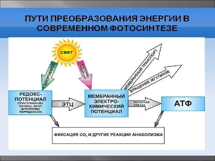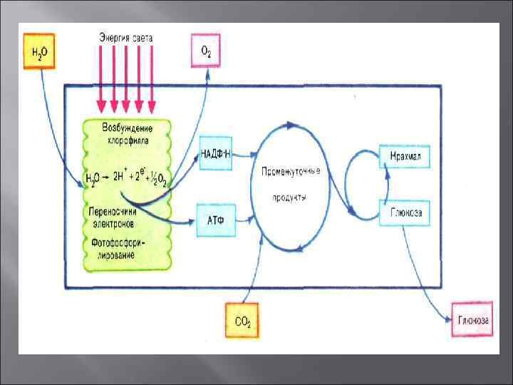 Функции в связи с процессом фотосинтеза Фотосинтез превращение энергии света в форму, которая может быть использована для осуществления химических реакций, при помощи тилакоидных мембран хлоропласта.