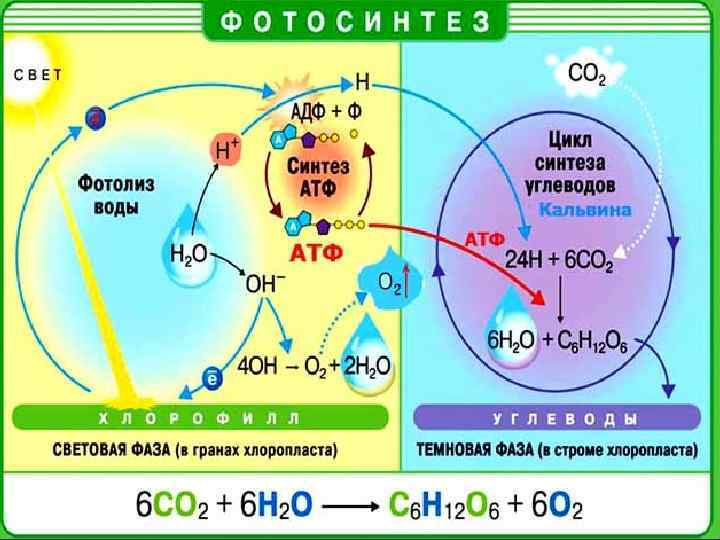 Световая фаза фотосинтеза Идет на мембранах тилакоида Присутствие света ОБЯЗАТЕЛЬНО ! Фотолиз - разложение воды АДФ + фосфорная =АТФ кислота 2 e + 4 H++ HAДФ НАДФ*Н 2 (переносчик водорода)