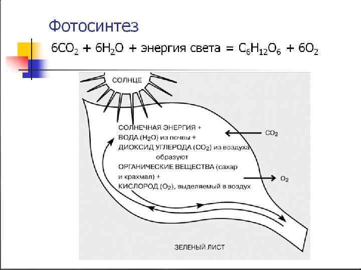 Фотосинтез Процесс образования органических веществ из неорганических за счет энергии света. Идет в хлоропластах.