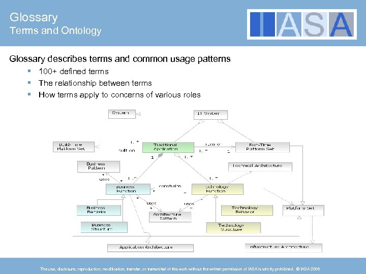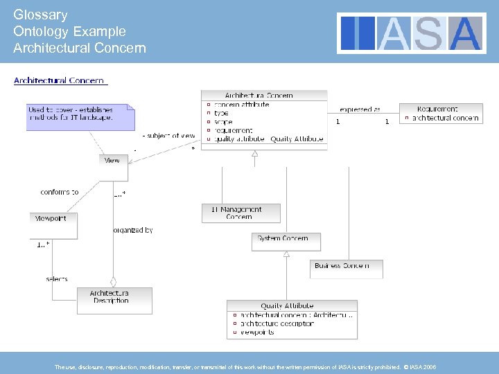 Glossary Ontology Example Architectural Concern The use, disclosure, reproduction, modification, transfer, or transmittal of this work without the written permission of IASA is strictly prohibited. © IASA 2006