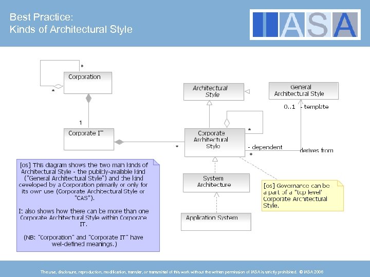 Best Practice: Kinds of Architectural Style The use, disclosure, reproduction, modification, transfer, or transmittal of this work without the written permission of IASA is strictly prohibited. © IASA 2006